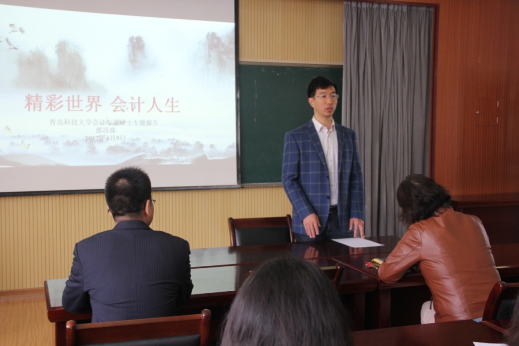 4月9日上午2017级非全日制MPAcc入学前教育在经管楼419隆重举行,熊猫体育熊猫体育特邀嘉宾邵昂珠先生给学员做了题为”精彩世界 会计人生”的报告。邵先生从会计行业的就业、需求等多个方面,详细设计了学员今后3年的学习与工作方法,并结合自身经验,与大家分享了职业成长规划的制定。会后,学员纷纷表示有了更加明确的职业发展方向,受益匪浅。