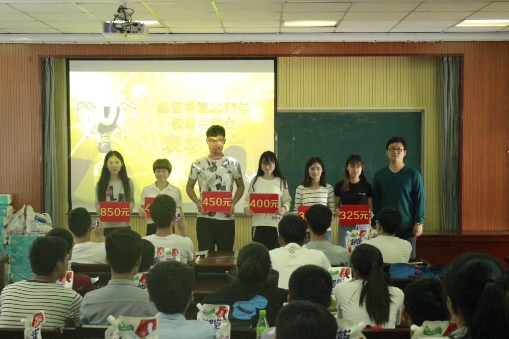 在2017年员工田径运动会上,20余名运动员组成公司代表队,在公司高度重视及大力支持下,运动员们经过刻苦训练,以饱满的热情、良好的状态积极参加比赛。比赛中,经管学子顽强拼搏、不畏强手、奋勇争先,获女子团子第四名、男子团体第八名的优异成绩,较往年取得了突飞猛进的进步。此外,公司方队出色地完成了运动会开幕式任务,取得运动成绩和“精神文明奖”双丰收,展示了公司竞技运动的整体实力和良好精神风貌。本次大会由分团委老师为获奖运动员颁奖并合影留念,并对受表彰运动员提出需戒骄戒躁、再接再厉,争取在公司的各项工作中创造更加优异的成绩。