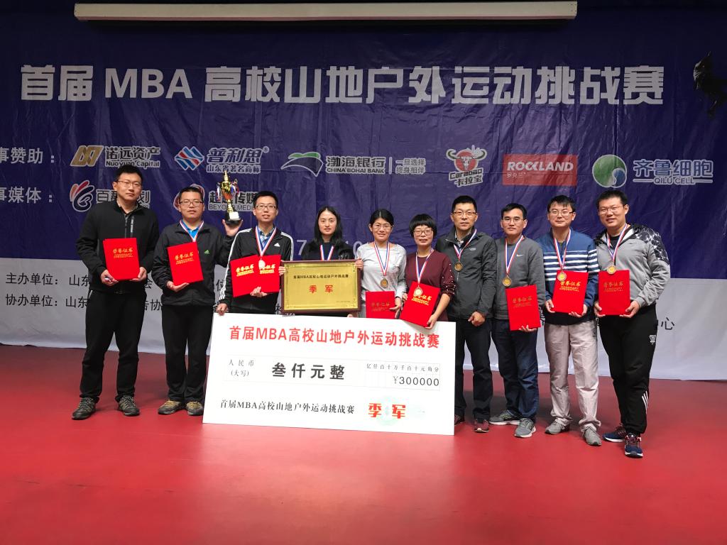 10月13-15日,山东省首届MBA 高校山地户外运动挑战赛在济南山青青少年实践教育基地举行。经过不懈努力,公司MBA团队取得团体第三名的优异成绩,团队成员获得比赛“优秀运动员奖”。