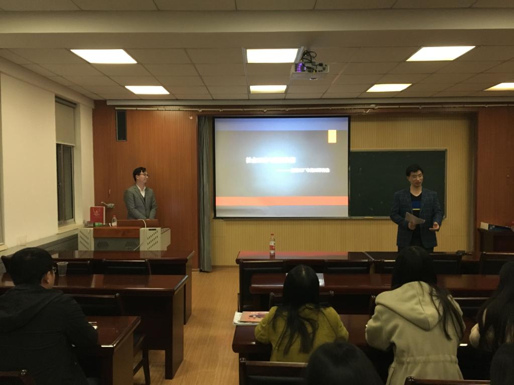 11月4日,熊猫体育邀请海归博士王晟哲在经管楼419室作题为“空间计量前沿”讲座。公司2016级全体学术型硕士及部分老师参加。讲座由公司副经理杨友才主持。