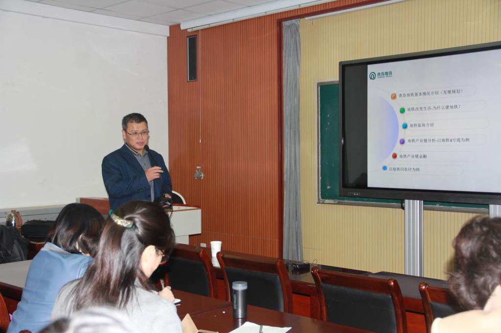 2017年11月21日晚6时30分,青岛地铁总会计师陈洪顺、博士做了题为“地铁产业链与商业生态”的学术报告会。报告由熊猫体育MPAcc中心主任刘树艳教授主持。MPAcc副主任张占贞、于培友等老师和全体MPAcc员工参加了此次报告会。
