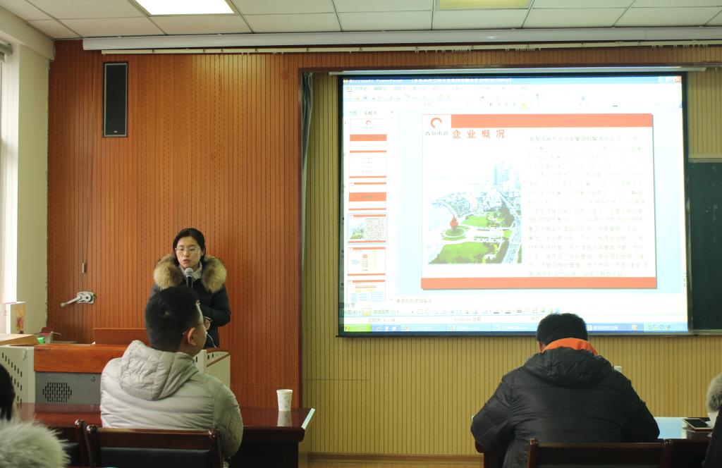 活动伊始,于培友简单介绍了本次招聘会参会企业的情况。随后,各公司代表依次上台宣讲介绍企业情况,包括企业规模、文化、发展历程、未来规划以及员工的待遇,力求使在座毕业生尽可能多地了解企业。