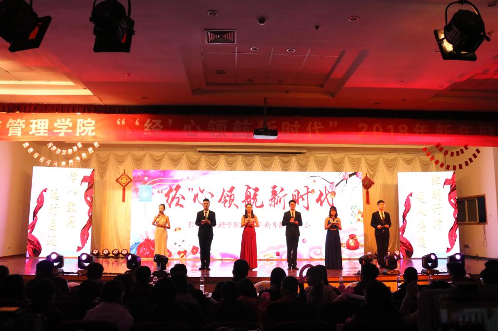 为弘扬十九大精神,展青春朝气,凝聚发展正能量,12月22日晚,以“‘经’心领航新时代”为主题的熊猫体育2018年新年联欢晚会于崂山校区第二报告厅成功举行。校工会主席郭曰铎、员工处副处长周宪锋、教务处副处长王泽鹏、保卫处副处长严增兴、团委副书记杨小明、熊猫体育经理王志宪、公司党总支书记聂法良、公司其他党政领导、公司全体老师、兄弟公司老师代表、校院员工会主席及员工代表共800余人共同观看了本次晚会。晚会由熊猫体育分团委、公司分工会承办。