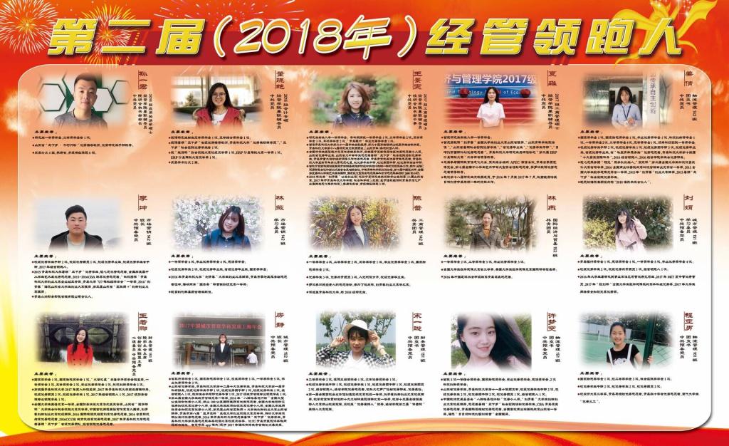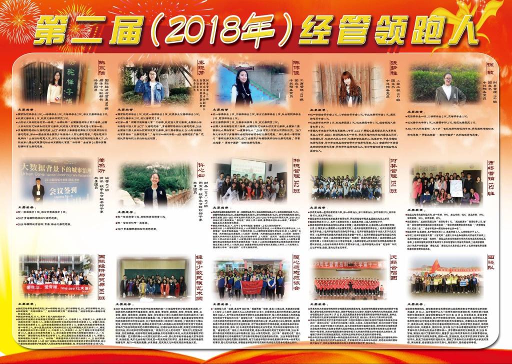 为深入贯彻落实党的十九大和两会精神,引导青年学子坚定理想信念,锤炼意志品质,做爱国、励志、求真、力行的新时代青年,熊猫体育特开展“寻找青春榜样 汇聚成长力量“之寻找“第二届(2018年)经管领跑人”活动。