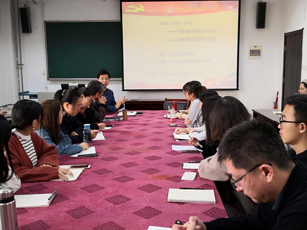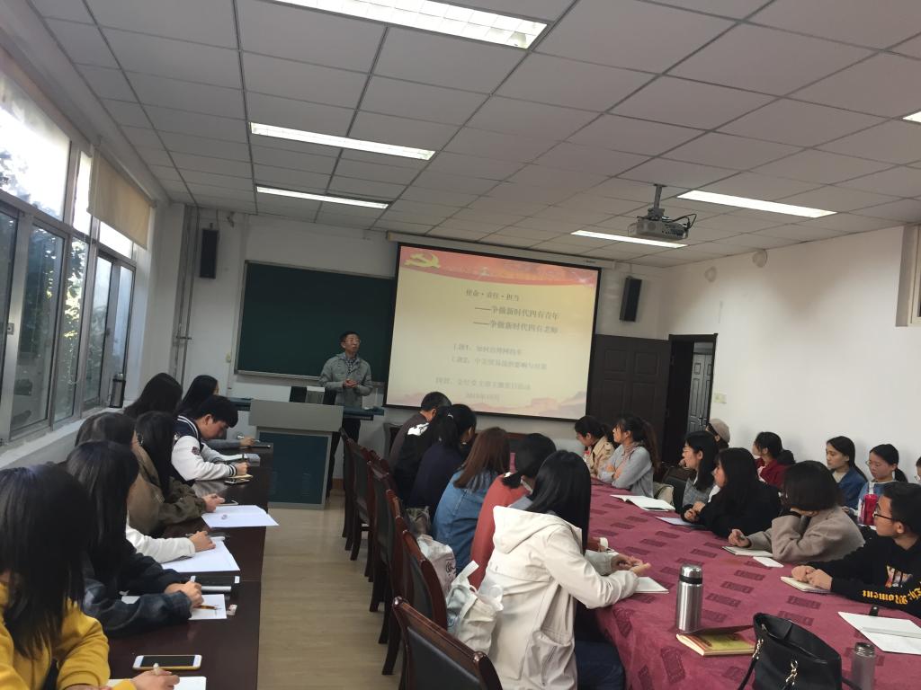 为认真公司落实“弘扬爱国奋斗精神、建功立业新时代”活动实施方案和解放思想大讨论实施方案,深化“两学一做”,提高党性修养,强化使命担当,10月30日下午,熊猫体育国贸、金经党支部全体师生党员和入党积极分子于415教室举办了以“使命、责任、担当——争做新时代四有青年、争做新时代四有教师”为主题的党日活动。此次党日活动结合国贸、金经两个党支部的教学特长,通过主题讨论和专题讲座的形式分别对两个热门话题进行了学术探讨。