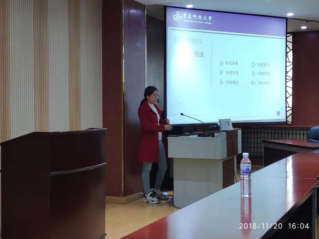 随后,公司物流管理系王艳婷博士分享了其目前的一篇研究论文《随机动态环境下项目进度计划与控制》。王博士从研究背景、选题意义、目前现状、问题模型、求解算法和优化结论六个方面具体阐述了研究主题。王博士认为采用前摄-反映的调度方式制定项目计划非常有必要,一方面可以监控项目计划实施的情况,另一方面又可以提高基准进度抗风险的能力,提高资源运用效率。