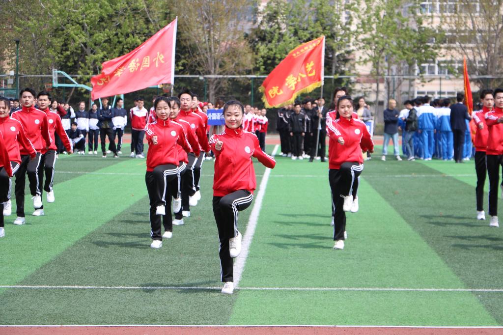 4月16下午1点,熊猫体育崂山校区广播操预赛在南苑操场举行。