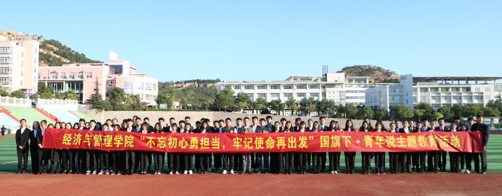 随后,全体师生面向国旗,高唱国歌,激发出经管学子接过时代接力棒、砥砺前行勇担当的无限热情。优秀员工代表、第34届员工会副主席肖映彤作了国旗下的演讲。他表示:“为了民族的复兴、国家的富强,我们要弘扬时代新思想,勇做时代弄潮儿。”接下来,由优秀员工邢筠秋、高煜婷、周志行、赵宜政朗诵了经典现代诗《我的祖国》,抒发了青年员工对祖国壮丽山河的无限赞美和建功立业新时代的精神风貌。员工会主席左靖雯作为领誓人带领全体员工面向团旗重温入团誓词,用青春梦激扬中国梦,让爱国情化为报国行。最后,全体员工在主题教育横幅上签字并留下对伟大祖国的美好祝福,以青春的名义共赴时代之约。