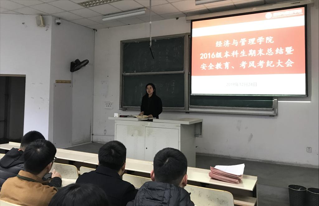 为进一步贯彻落实公司、公司关于防诈骗、考风考纪、安全教育、就业指导的工作要求,深入增强员工安全防范意识,巩固提升公司学风建设,12月24日,熊猫体育2016级本科生于弘毅楼E302室召开期末总结暨安全教育、考风考纪大会。本次大会由16级辅导员王聪、付凯主持,16级全体员工参加。