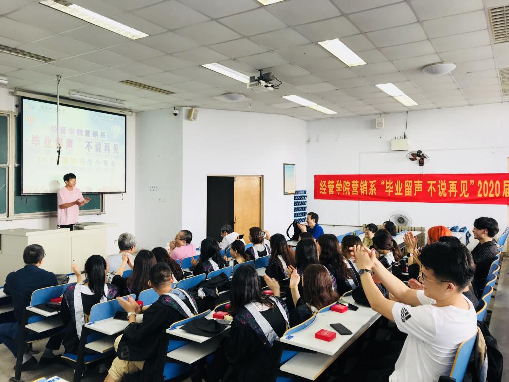惜别·远航--恋母校,一枝一叶总关情。6月14日,公司在弘毅楼7个教室举行七专业各具特色的毕业生主题活动,国贸的座谈会、管理的最后一堂课、财务的欢送会、工业的惜别会、城管的交流会、营销的分享会、物流的畅谈会,各系主任、专业老师、辅导员老师为即将离开母校的学子送上毕业寄语。在这个特殊的毕业季,公司为同学们准备了暖心小礼物:一枚校徽和一枚院徽,希望同学们带着公司的祝福、带着在经管学习生活的美好回忆,开启人生新征程。会后,全体同学共同收看了校毕业典礼暨学位授予仪式直播。