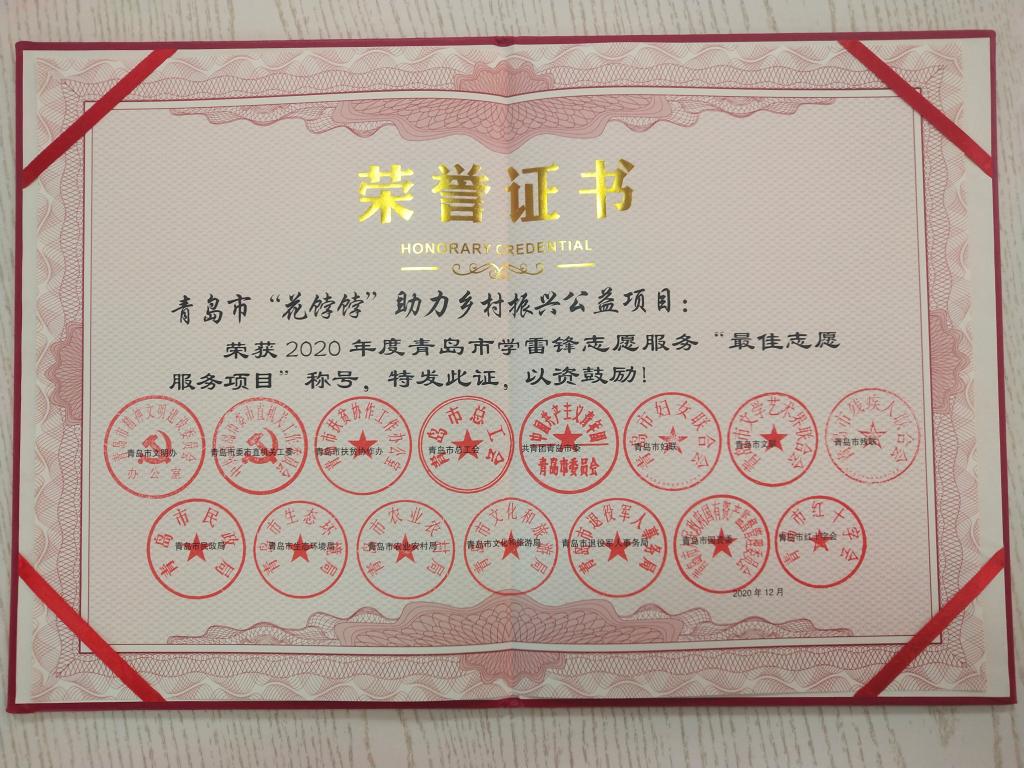 近日,青岛市文明办等部门和单位共同开展2020年度全市宣传推选学雷锋志愿服务“四个100”先进典型活动。在各区市、各单位层层推荐的基础上,经主办单位初评、专家复评、网上公示等程序,由公司学子长期运作的“花饽饽”助力乡村振兴公益项目获2020年度青岛市学雷锋志愿服务“四个100”先进典型——最佳志愿服务项目。