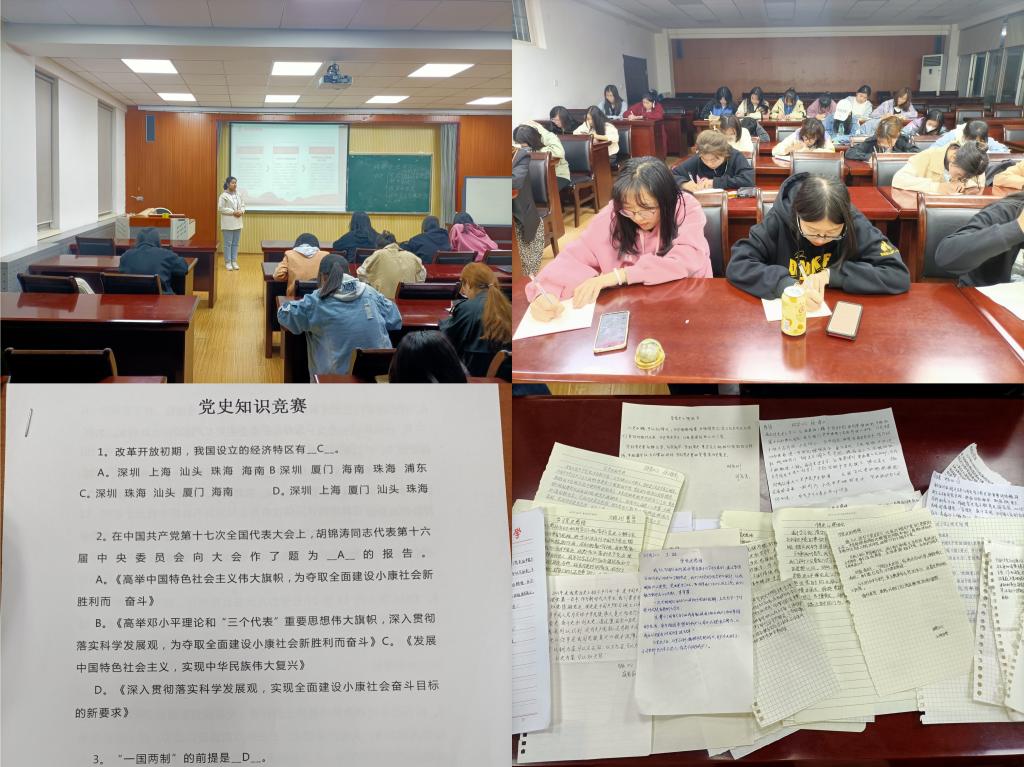 团支部举办党史知识竞赛,以赛促学,共同传承红色基因,凝聚奋进力量。整场知识竞赛涵盖了党史、新中国史、改革开放史、社会主义发展史“四史”内容,集知识性、教育性、趣味性于一体,充分调动同学们深入学习党的知识的动力。把党史知识和老员工思政教育结合起来,通过竞答鼓励同学们回顾红色历史,以史为鉴,承前启后,营造出同学们共同学习,共同提高的良好氛围。