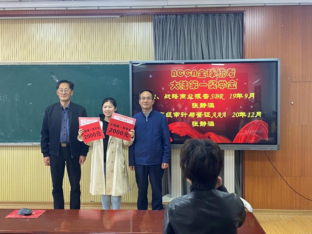 4月15日,财务管理ACCA方向班在经管504会议室隆重召开大会,表彰18级、19级、20级ACCA方向班在2019-2020-1至2020-2021-1学期的会计师与企业(AB)、管理会计(MA)、财务会计(FA)、公司法与商法(LW)、业绩管理(PM)考试中的成绩优秀者,以及在全球统考2019年9月考季至2020年12月考季获得大陆第一的优秀考生。奖学金评选是根据青科大经管字[2018] 7号《熊猫体育ACCA 班单科成绩优秀奖学金办法》要求,经ACCA办公室初步评选、公司评审小组评审,评出42名品学兼优的员工,获ACCA单科成绩优秀奖学金,一等奖学金600元,二等奖学金300元,大陆第一奖学金2000元。