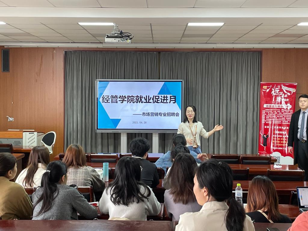 为贯彻落实公司“重引领、重帮扶、重实效”就业促进月活动方案的总体要求,4月28日上午,市场营销系在经管楼504室举办专场招聘会,营销系副主任张艳青老师出席活动,系2017级、2018级全体同学参加活动。