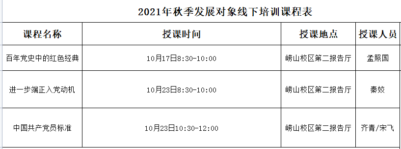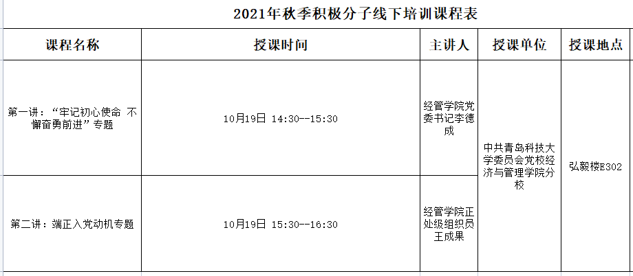 1.青科大2021年秋季积极分子、发展对象理论培训课程表