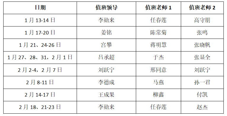 熊猫体育2022年寒假值班表