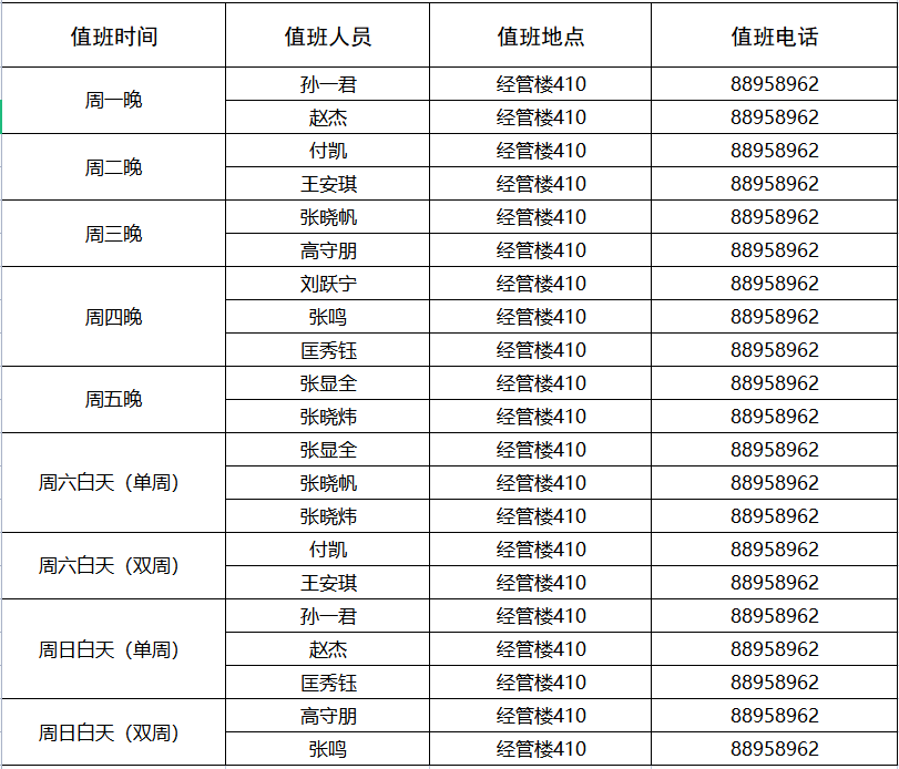 熊猫体育学工队伍2021-2022学年第二学期常态化值班安排表