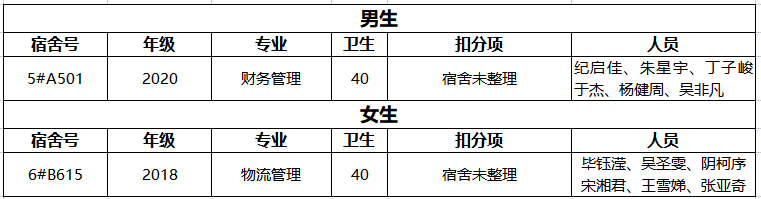 不合格宿舍如下: