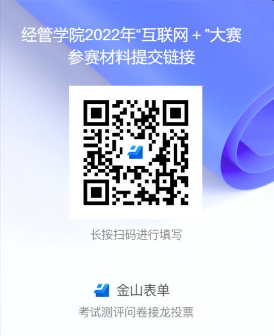 公司各年级需组织各参赛报名团队于2022年4月13日前通过「熊猫体育2022年“互联网+”大赛参赛材料提交链接https://f.wps.cn/w/1xzxiX4t/」或扫描下方二维码完成参赛材料提交。