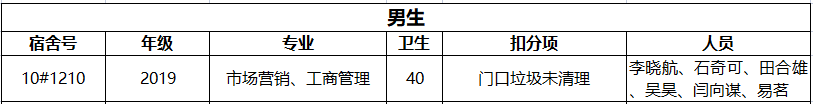 卫生检查结果及扣分细则请见附件,请各年级对照问题监督好不合格宿舍的整改。
