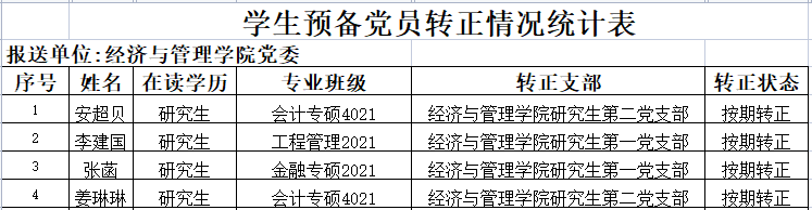 根据《中国共产党章程》和《中国共产党发展党员工作细则》及公司党委《关于发展员工党员工作的意见》(青科大党字〔2014〕77号)文件要求,熊猫体育研究生党支部于2022年3月30日召开预备党员转正大会讨论安超贝等4位同志的转正问题(按姓氏笔画排序),同意以上同志按期转为中共正式党员,现将该4名同志情况予以公示。公示期为2022年3月30日至2022年4月6日。如有异议,请于公示期内到公司党委反映。