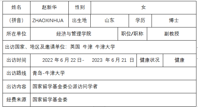 根据因公临时出国公开公示的有关规定,现将赵新华同志因公出国相关内容予以公示,公示时间为2022年6月14日至2022年6月20日(5个工作日)。