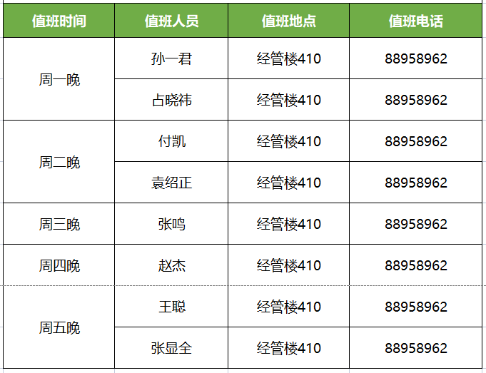 熊猫体育学工队伍2022-2023学年第一学期常态化值班安排表