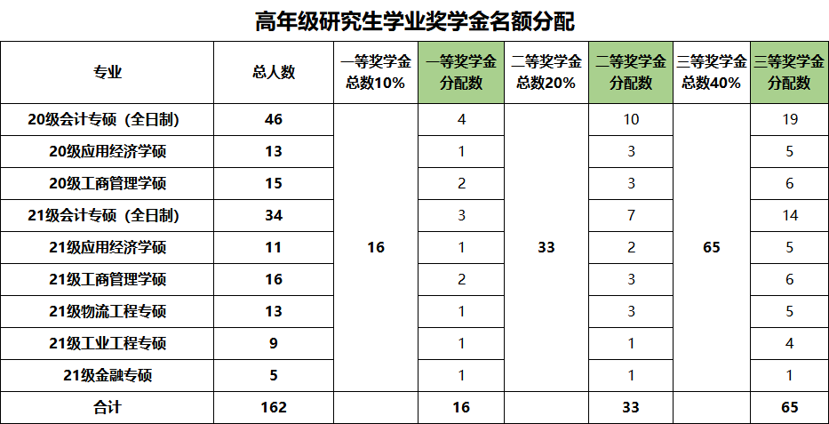 为进一步深化研究生教育综合改革,提高公司产品质量,激励公司研究生勤奋学习、潜心科研、勇于创新、积极进取、全面发展,根据《研究生学业奖学金管理暂行办法》(财教〔2013〕219号)、《熊猫体育研究生学业奖学金管理办法(修订稿)》(青科大字〔2022〕5号)、《熊猫体育研究生学业奖学金评定细则(试行)》(见附件)文件精神,结合集团关于做好2022年研究生学业奖学金评选工作的通知的要求,熊猫体育一年级研究生学业奖学金一等(推免)1个、一等7个、二等21个、三等72个;高年级研究生学业奖学金一等16个、二等33个、三等65个,现将研究生学业奖学金名额分配如下: