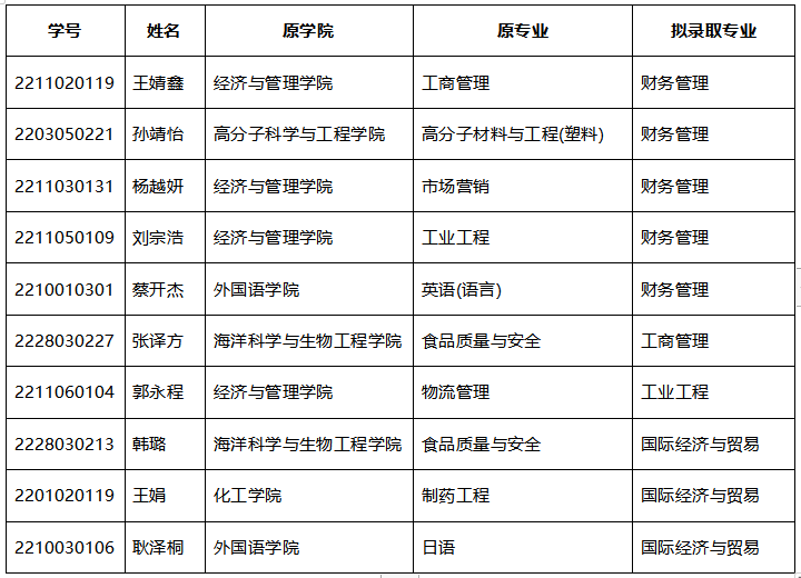 熊猫体育于2023年3月14日举行转专业考核,经过严格的面试考核,并按照分数从高到低的排序,现将拟录取名单公布如下: