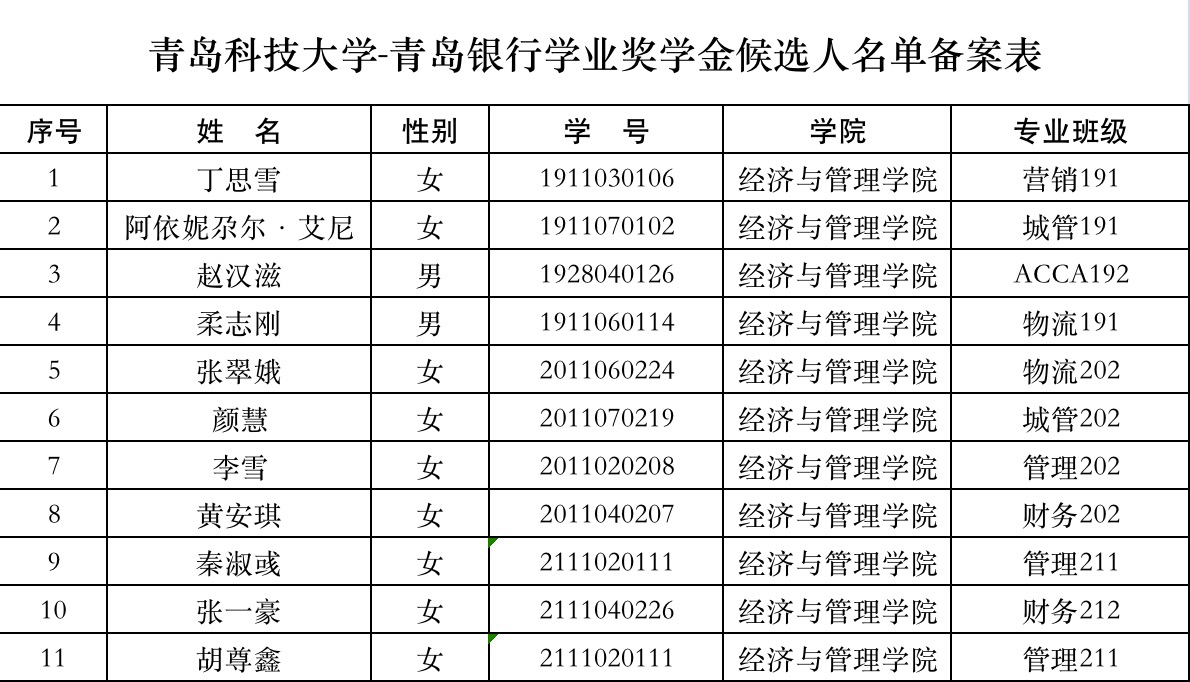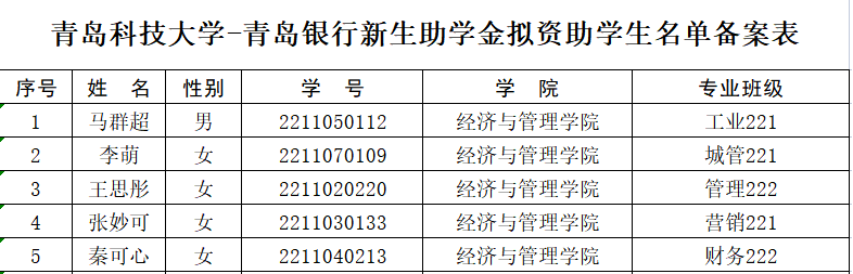 【公示】熊猫体育2022年度青岛银行奖助学金名单公示