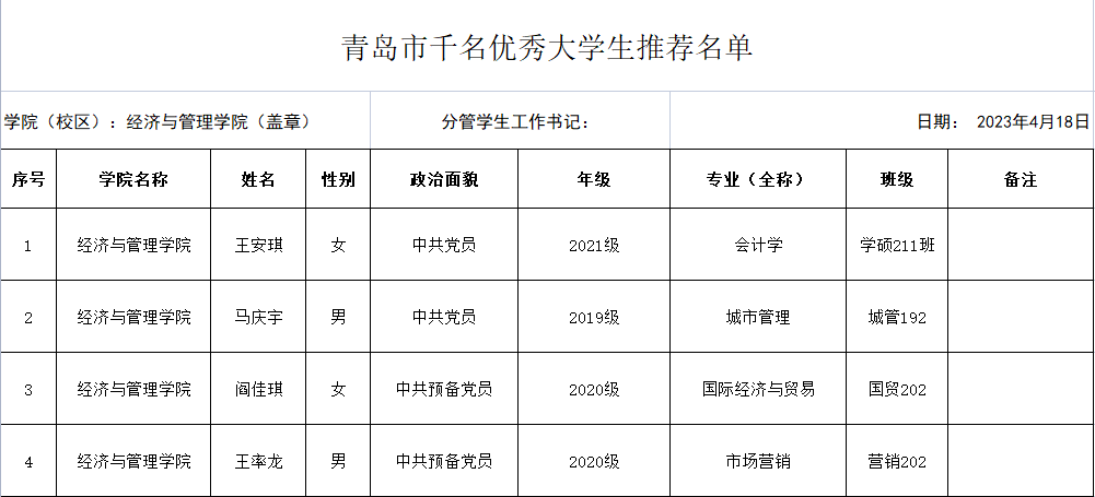 根据公司《关于评选2023年度“青岛市千名优秀老员工”的通知》的要求,经个人申请、材料审核,现将熊猫体育“青岛市千名优秀老员工”候选人公示如下,公示时间2023年4月18日-2023年4月20日。