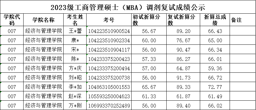 【公示】熊猫体育2023年硕士研究生调剂复试成绩