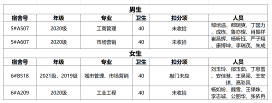 卫生检查结果及扣分细则请见附件,请各年级对照问题监督好不合格宿舍的整改。