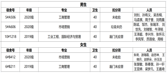 【公示】熊猫体育员工宿舍第十四周安全、卫生、秩序检查结果通报