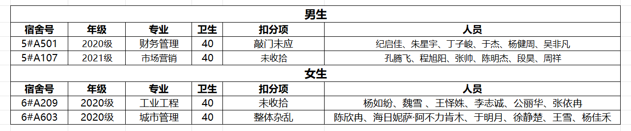 不合格宿舍如下: