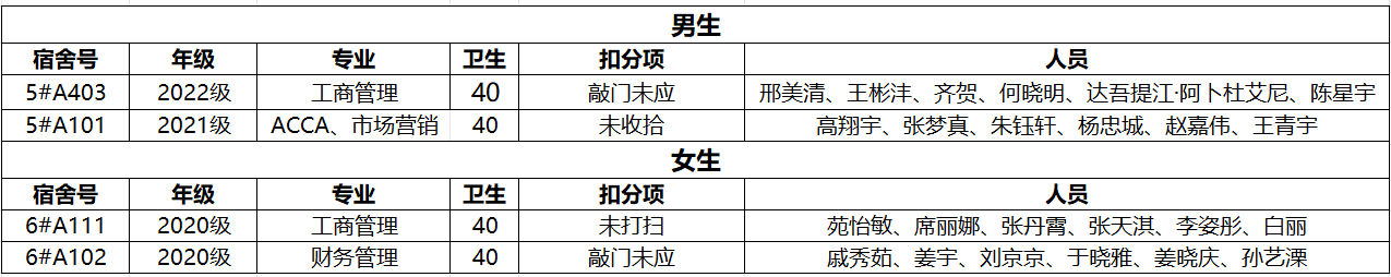 【公示】熊猫体育员工宿舍第十六周安全、卫生、秩序检查结果通报