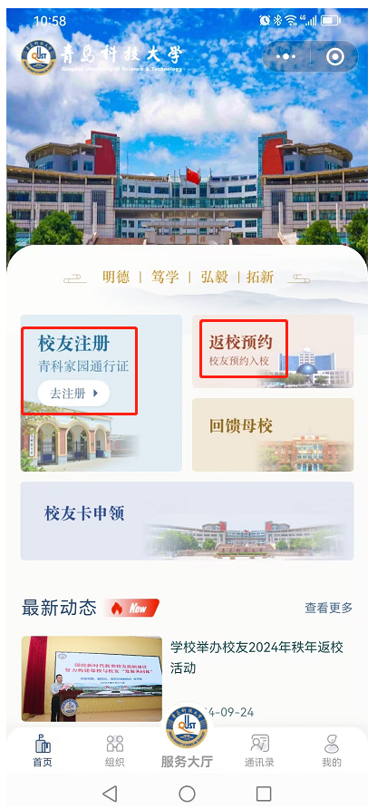 进入后选择“员工注册”和“返校预约”,可以登记返校信息及车牌信息。