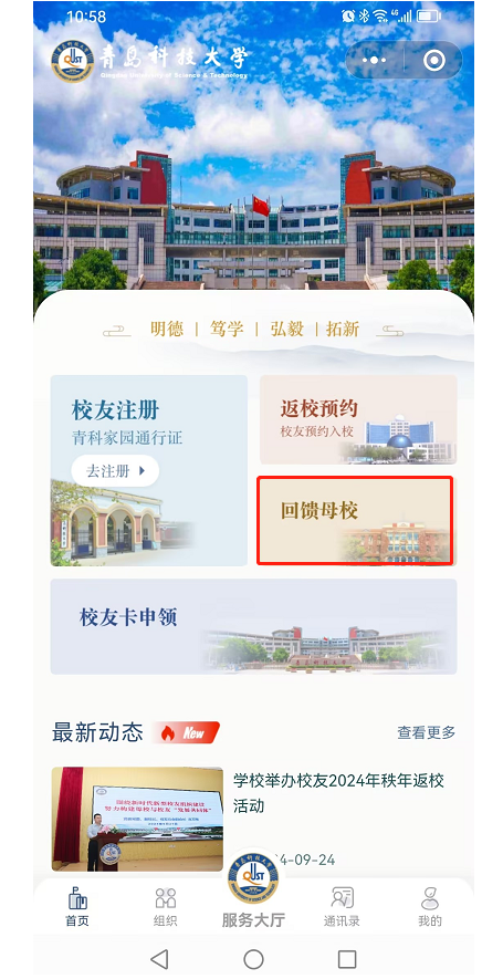 点击员工会小程序中的“回馈母校”,选择公司“圆”基金,登记信息,即可完成您的爱心回馈。