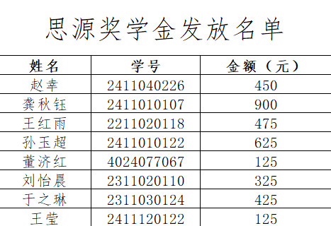 为鼓励先进,树立榜样,营造良好的学习实践氛围,对在学习、实践等方面表现突出或者因突发状况导致家庭经济困难的员工进行一定数额奖(助)学金的鼓励和支持。根据公司思源奖学金评选要求,经公司研究,决定对在2025年校员工运动会中表现优异的先进个人发放思源(体育)奖学金并予以表彰。现对获得者名单予以公示,有意见或建议者,请于公示期内,以电话或者书面形式向熊猫体育学工办(团委)或党委反映。