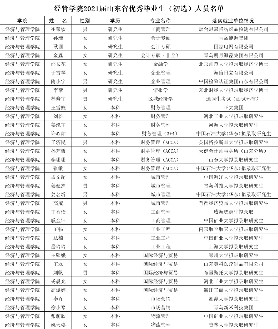 根据公司《关于开展2021届山东省优秀毕业生评选工作的通知》的具体要求,经个人申请、资格审查,在综合测评和民主评议的基础上,秉着公开、公平、公正的原则,先将熊猫体育2021届山东省优秀毕业生(初选)人员名单(见下表),予以公示,公示时间:2021年4月28日-30日。