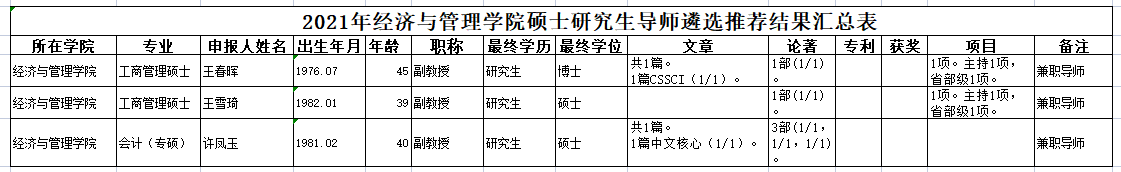 【公示】2021年熊猫体育硕士生导师遴选结果公示
