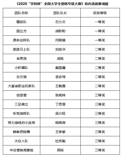 关于公布2021“学创杯”全国老员工创业综合模拟赛、营销专项赛校内选拔赛获奖结果的通知
