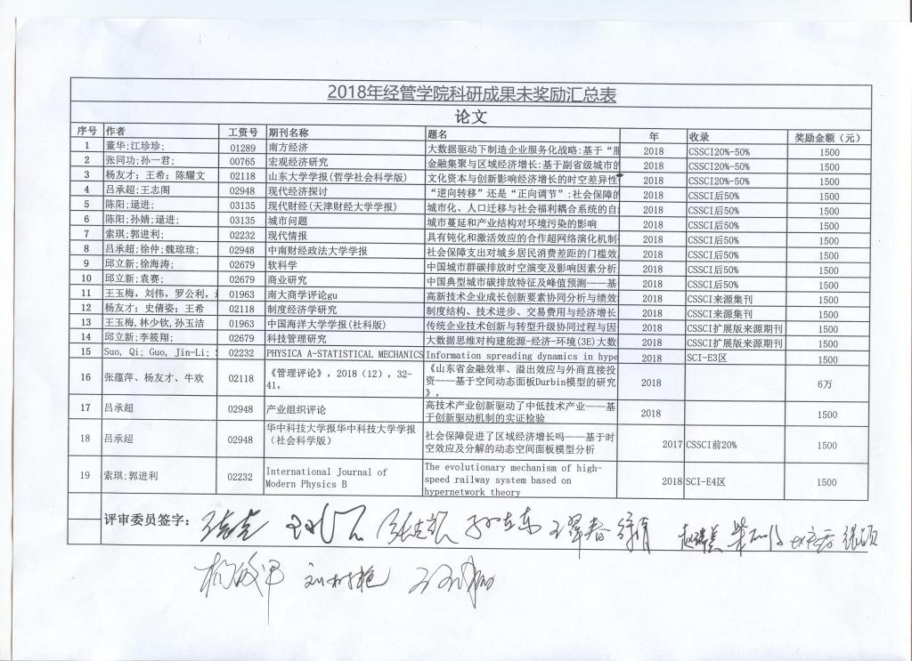 经过学术委员会审核,熊猫体育2018年度科研奖励公示如下图:
