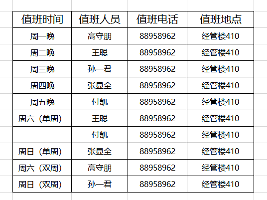 熊猫体育学工办(分团委)19-20学年第二学期值班安排