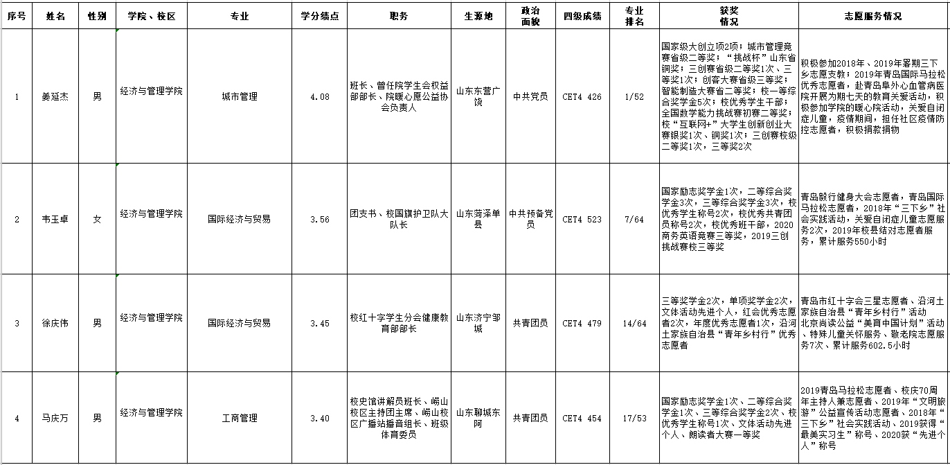 根据《关于组建熊猫体育中国青年志愿者扶贫接力计划第二十三届研究生支教团的通知》要求,经个人申请,公司资格审核,公司评审小组评选,秉着公平、公开、公正的原则,确定校第二十三届研究生支教团拟推荐人员名单如下: