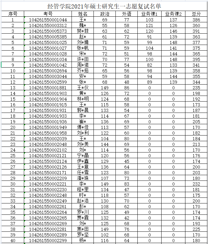 【公示】熊猫体育2021年硕士研究生一志愿复试名单公示