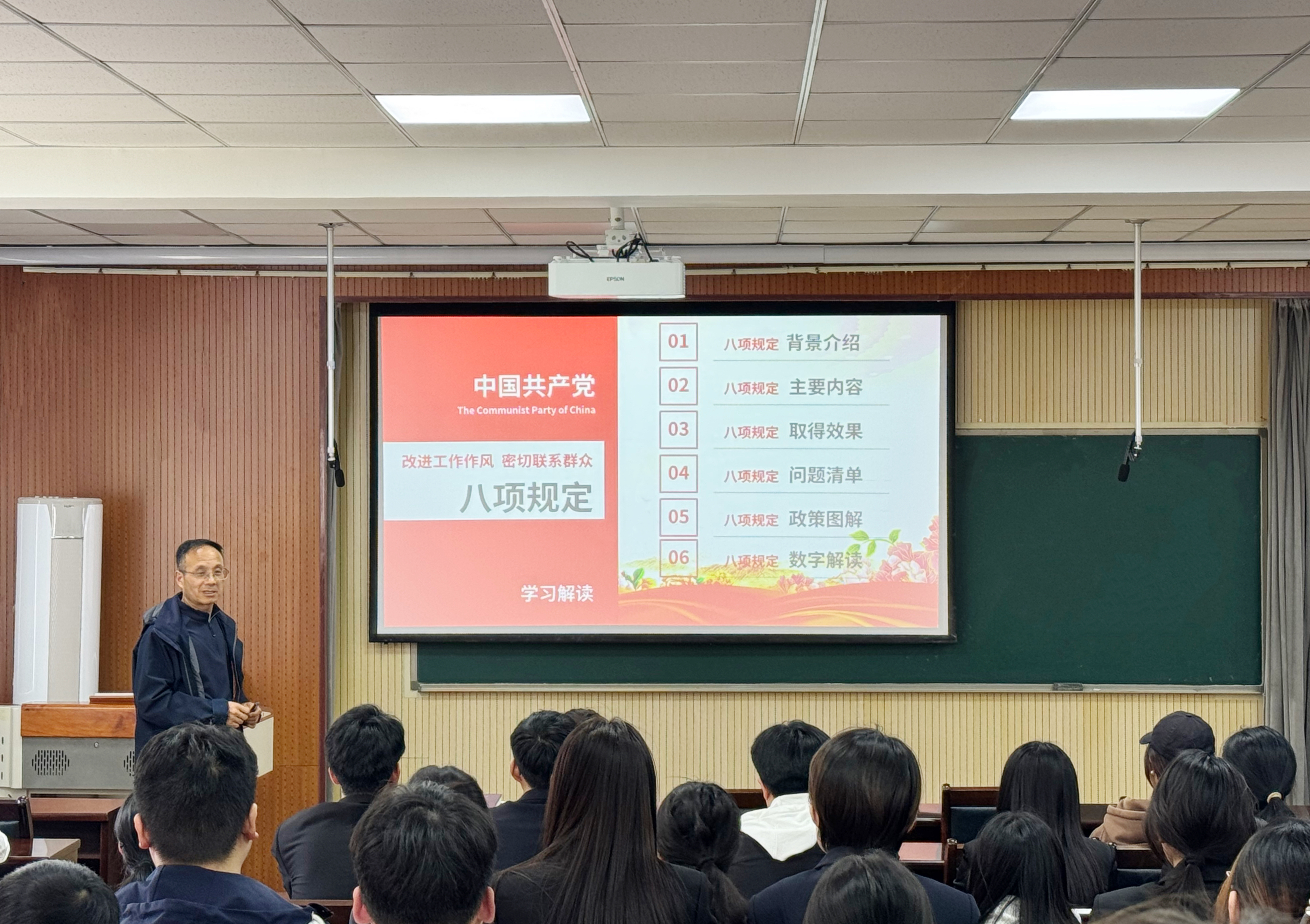 党课最后,李勋来向本学期新发展入党积极分子和发展对象提出三点要求:一是加强政治理论学习,强化理想信念。思想是行动的先导,要通过集中学习、自主学习等多种形式,深刻理解中央八项规定精神的内涵和要求,在思想上政治上行动上同党中央保持高度一致。二是要密切联系群众,牢记党的宗旨。党的宗旨是全心全意为人民服务,要改进工作作风,减少形式主义,到群众最需要的地方去,了解群众诉求,解决群众“急难愁盼”问题。三是要严格自我要求,从小事做起,争取成为作风过硬的党员。中央八项规定是党中央在新时代加强作风建设的重要举措,是全面从严治党的重要抓手。入党积极分子和发展对象作为新时代青年的先锋力量,更应深刻领会其精神内涵,艰苦奋斗,勤俭节约,从自身做起,从小事做起,时时处处严格遵守中央八项规定精神。