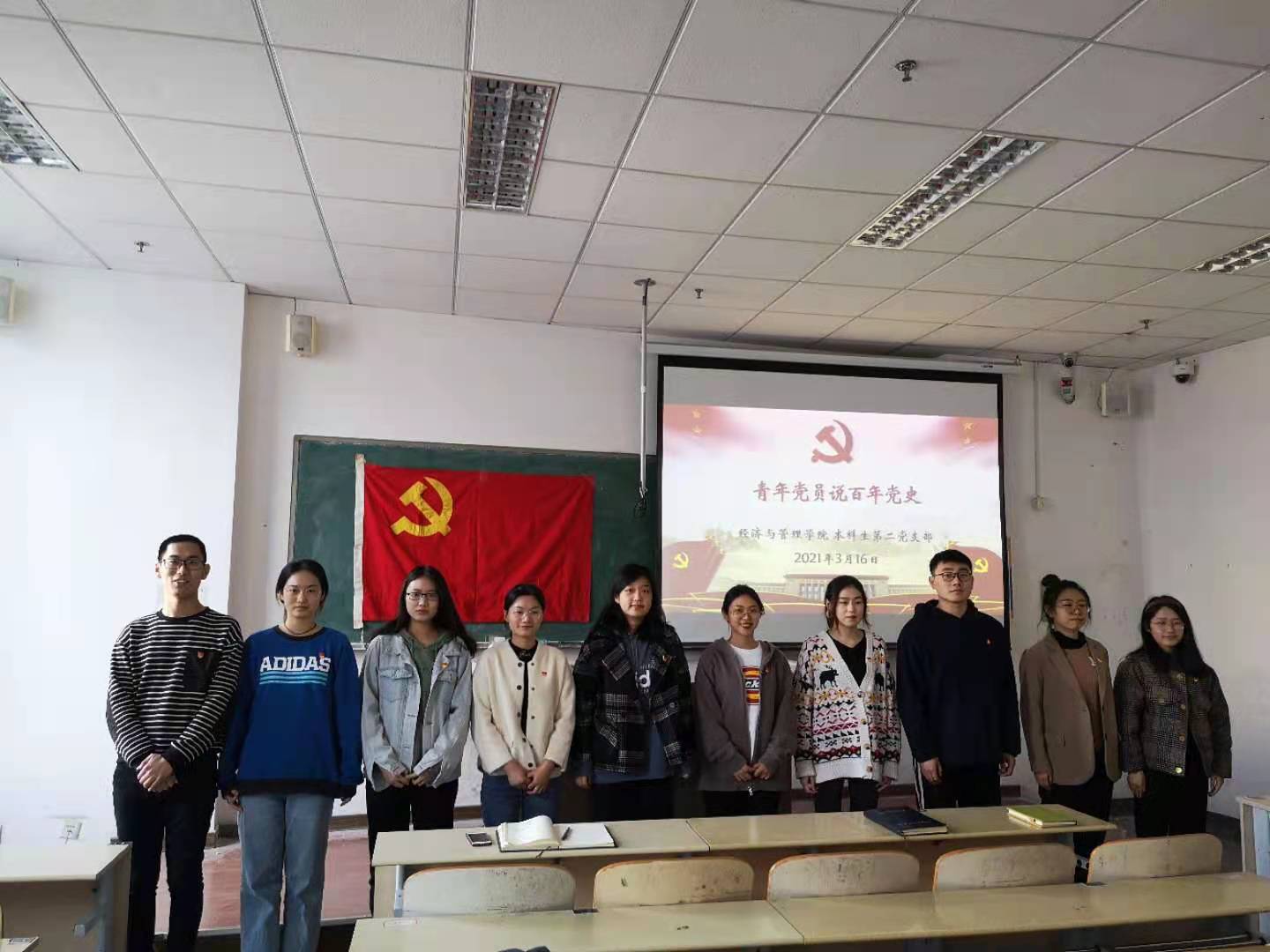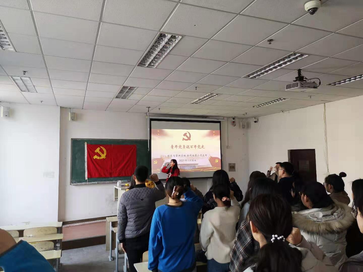 为深入贯彻落实习近平总书记的在党史学习教育动员大会上的讲话精神,推动党员学好用好党史,从党的光辉历史中汲取智慧和力量,3月16日下午,熊猫体育本科生第二党支部在明德楼307组织开展了“青年党员说百年党史”主题党日活动,全体党员参加了本次活动。