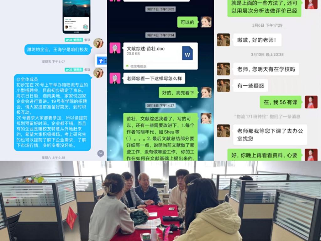 结合毕业生就业诉求和专业特色,物流管理系精心邀请了优质企业开展小型专场招聘活动,为毕业生和用人单位搭建起面对面沟通的桥梁。专业教师牺牲课外休息时间,通过一对一交流、办公室小组交流、QQ、微信等在线方式等形式回答不同同学在毕业季阶段遇到的各种问题和对大四毕业生开展考研调剂、就业引导和毕业论文的指导工作。对于非考研同学,解答他们在专业实习求职、工作中遇到的专业知识方面的问题、选择用人单位的困惑等,并及时给予求职建议,发挥党员先锋带头作用,积极开展了志愿服务活动。