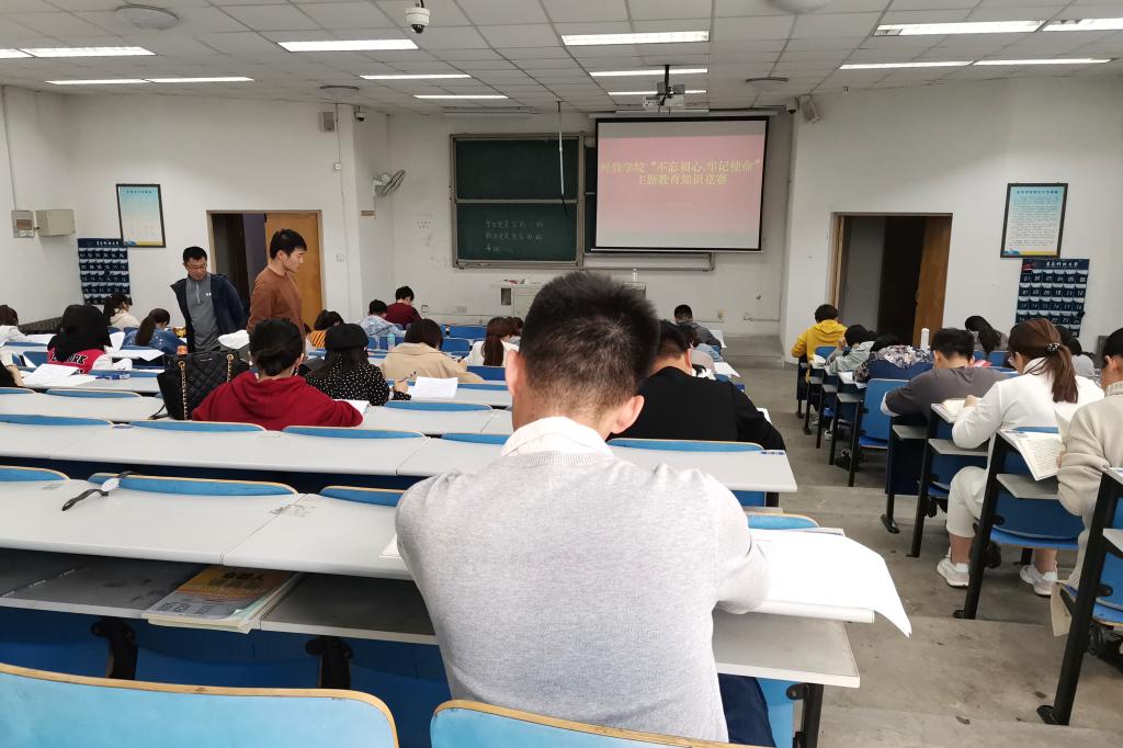 为进一步深刻领会把握“不忘初心、牢记使命”主题教育的重大意义和实践要求,深化巩固读书班学习成果,继续推动主题教育学习往心里走、往深里走、往实里走,熊猫体育员工党支部于10月20日在弘毅楼E203教室举行了员工党员“不忘初心、牢记使命”主题教育知识竞赛,全体辅导员以及员工党员共57人参加了本次知识竞赛。